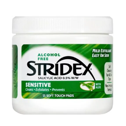 脂性肌さんの必需品「トナーパッド」部門で見逃せないのがストライデックス。特にこの緑パッケージ(センシティブ)は、BHA(サリチル酸)0.5%配合で毎日の角質ケアに最適な濃度設計です。