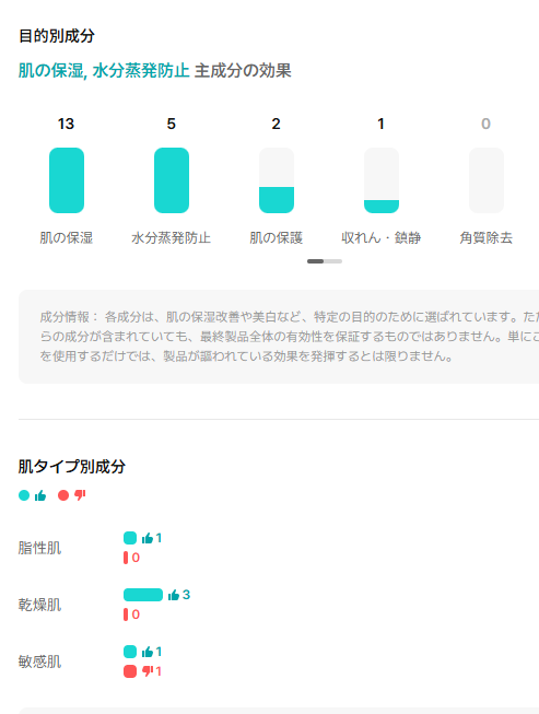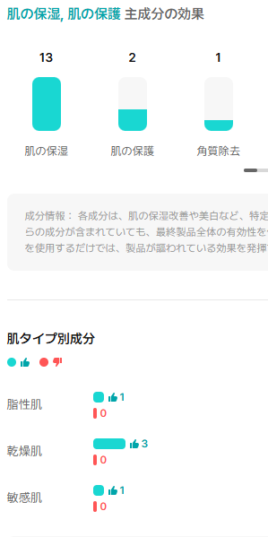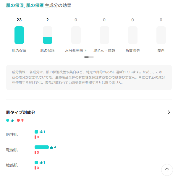 肌タイプ別成分は乾燥肌に👍が4つも…!